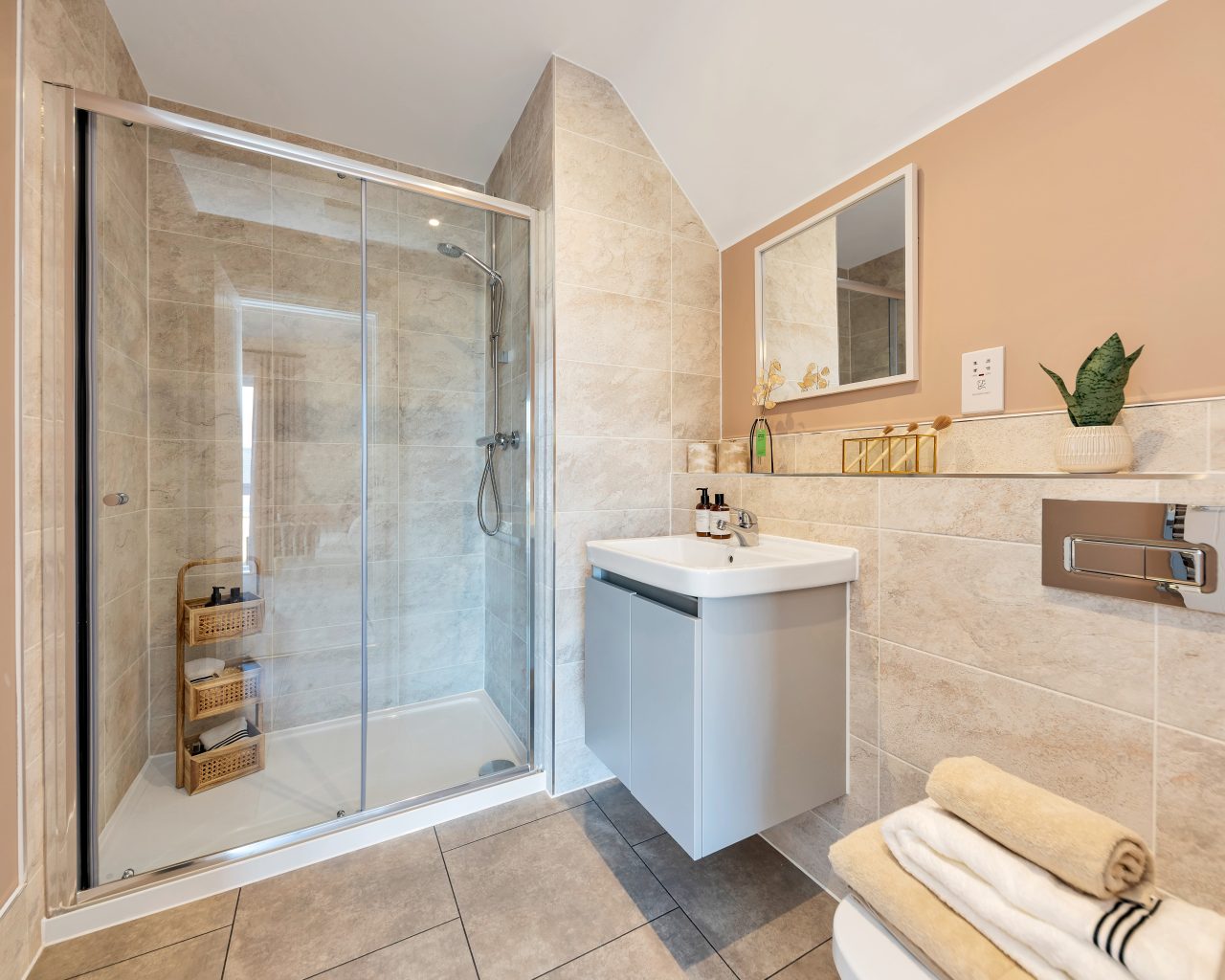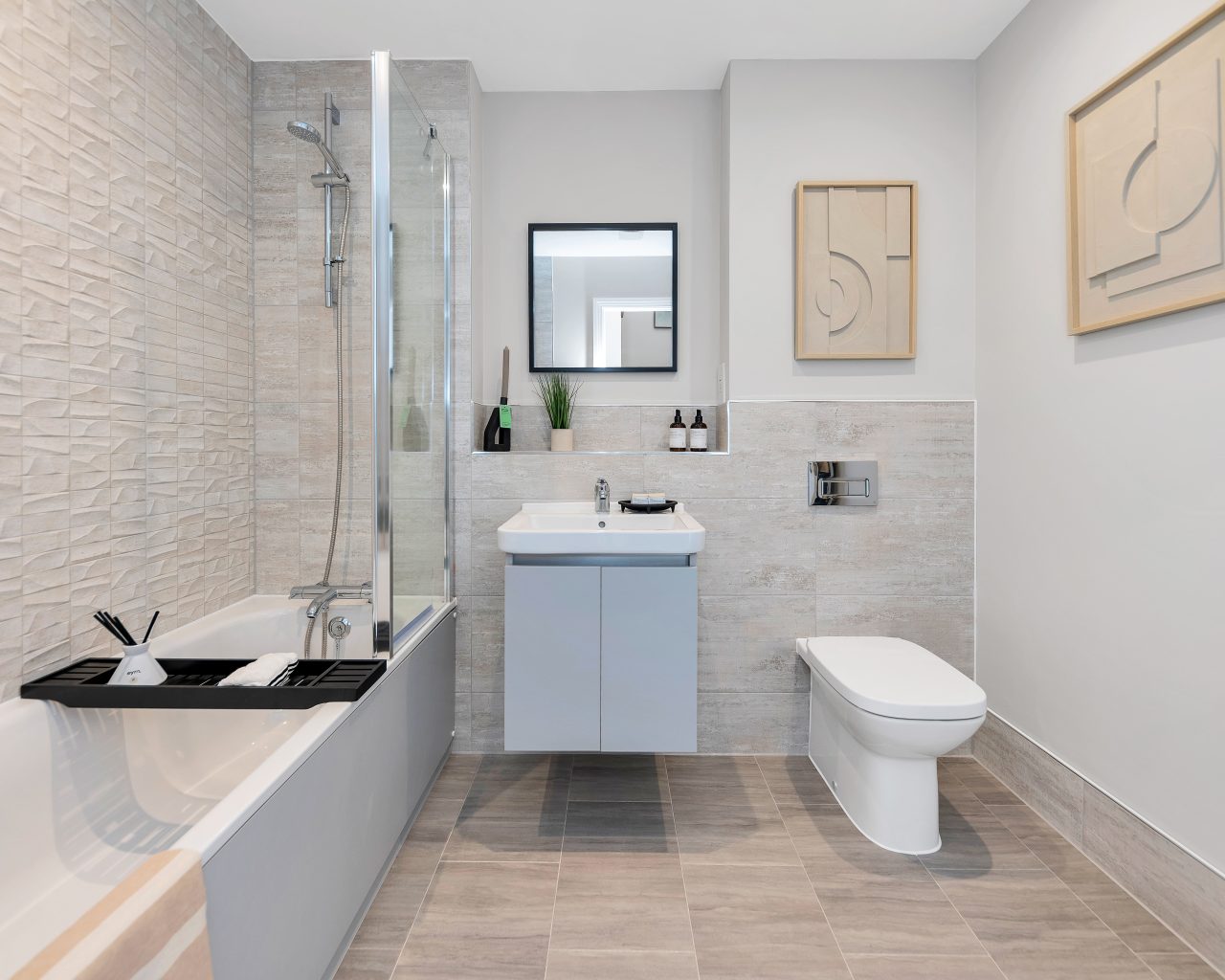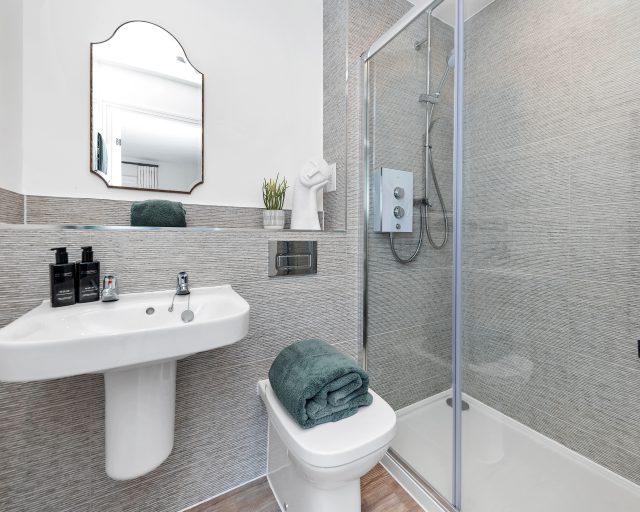 • High gloss vanity units to family bathroom and en suites (houses)